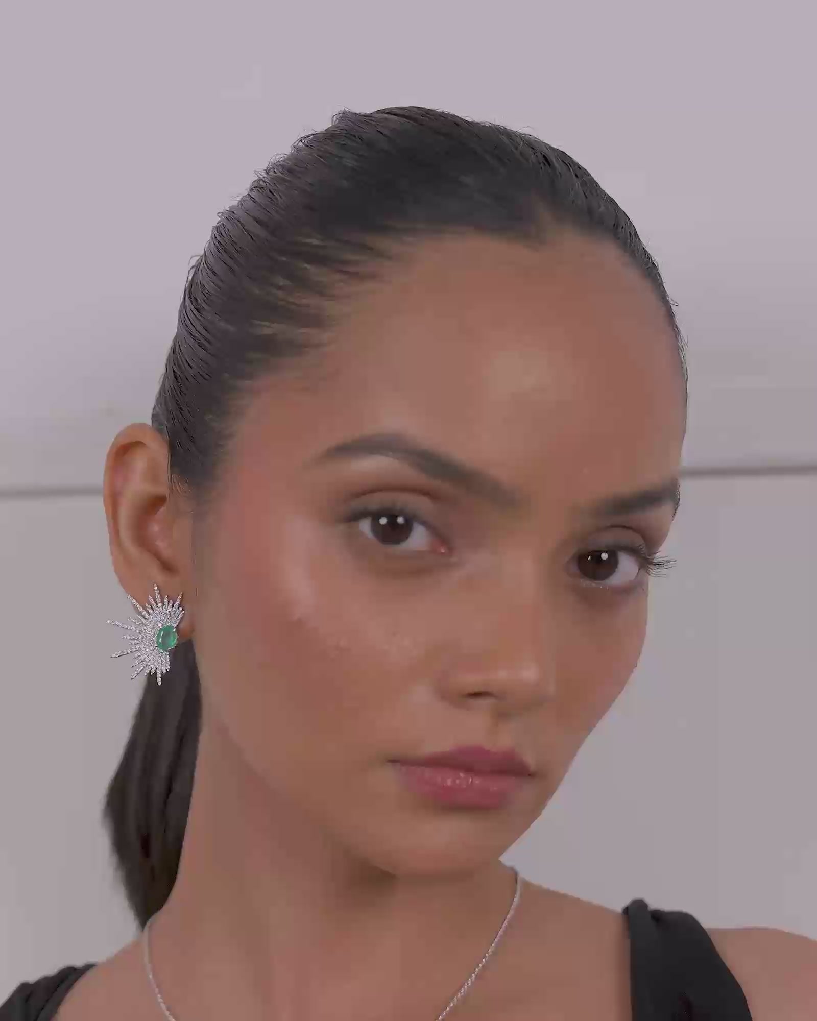A little danger, a lot of drama. The emerald spike studs are cast in hallmarked gold featuring sparkling round diamonds and anchored by two striking Zambian emeralds at the center. Wear it with a slick ponytail, sharp eyeliner, and you're good to go