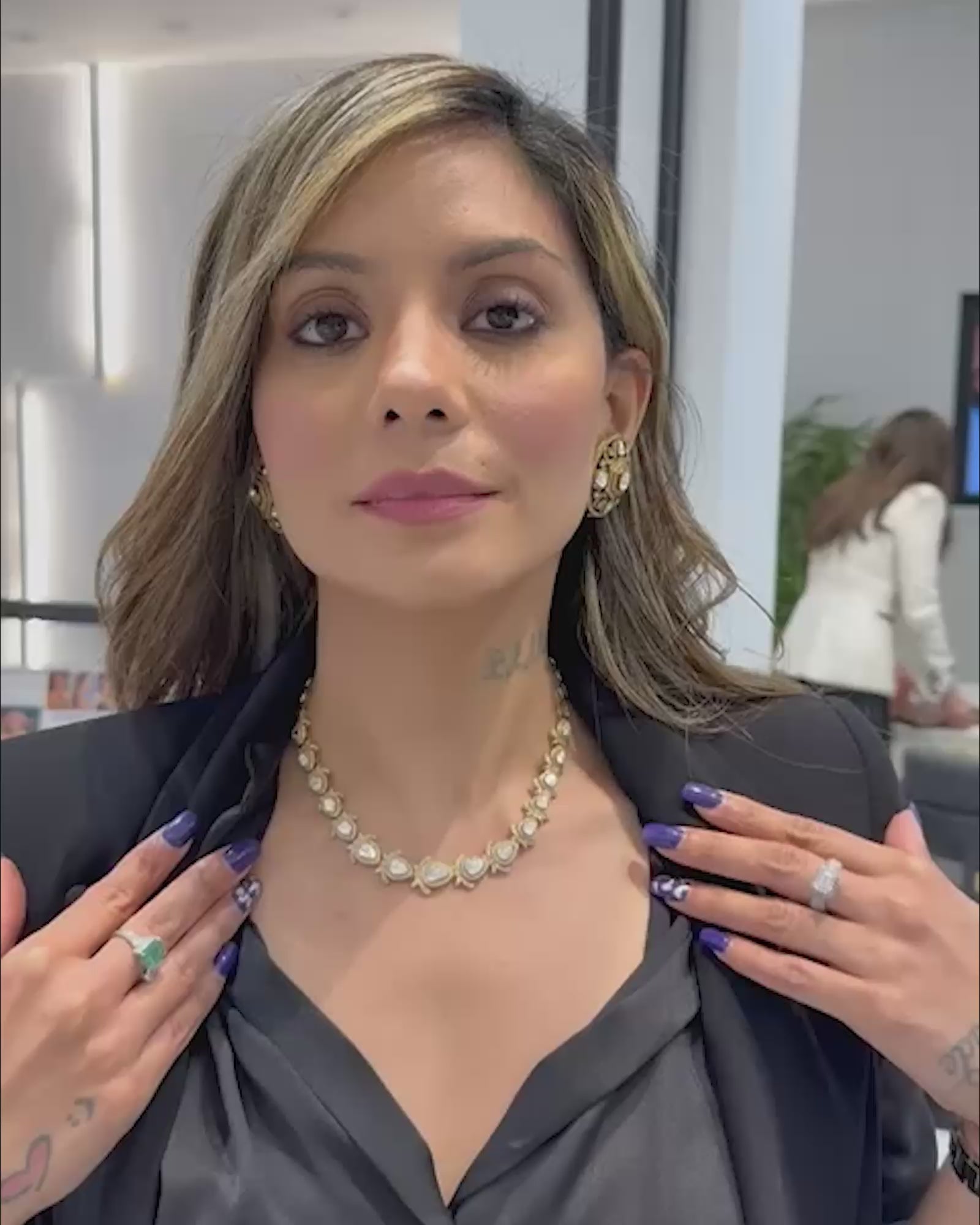 The Udaipur Noor Necklace is a celebration of refined artistry and luminous grace. Crafted with over 3 carats of Polki diamonds and 3.36 carats of round-cut diamonds, it radiates a softness that feels both regal and effortless. With intricate detailing, this necklace captures the charm of Udaipur’s royal heritage. It’s the perfect companion for mehendi celebrations, bridesmaids, or the bride’s sister—adding a subtle, radiant glow to every occasion.