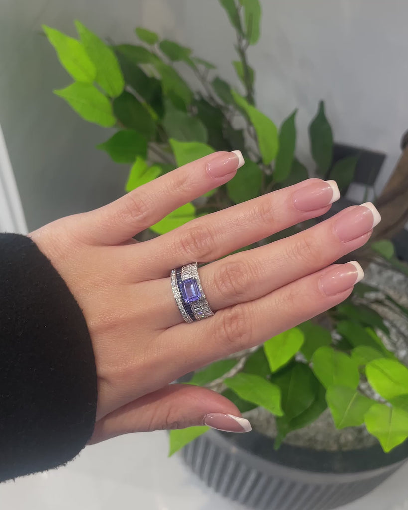 For those who don’t just show up—they own the moment. With its bold silhouette and striking tanzanite and blue sapphire accents, this ring adds the perfect touch of attitude to any look. Featuring round and baguette diamonds, it’s the everyday piece you’ll reach for when you want to stand out without trying too hard, whether dressed up or down.