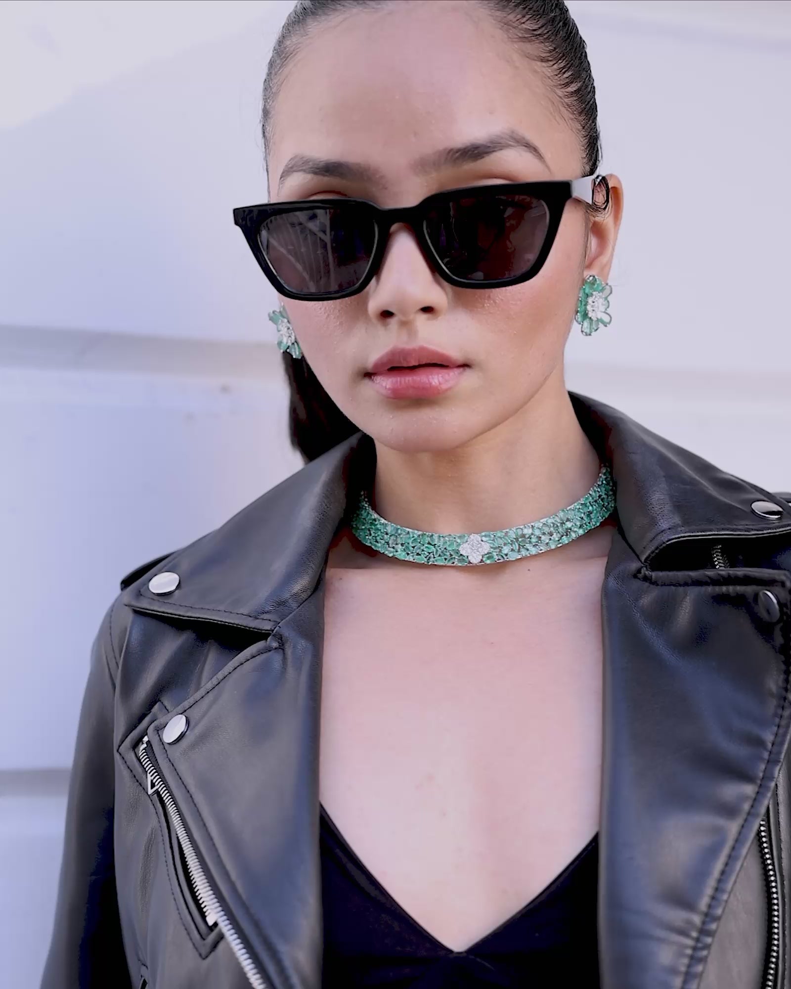 The Emerald Daisy Earrings feature pear and oval diamonds paired with 25 carats of intense Zambian emeralds—crafted into a striking, sculptural silhouette.
