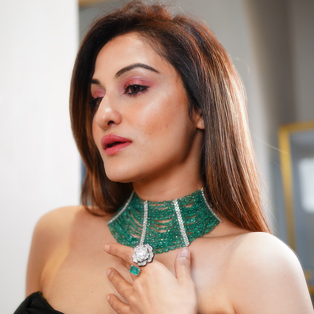 ONE JEWEL FOR YOUR MANY MOODS! One-Of-A-Kind and Prerna's personal favourite, the AMARIS Zambian Reverie necklace is a powerfully distinctive and an un-apologetic design. Strung is the finest of gleaming Zambian Emeralds, with rows of Fancy shape diamonds to add the right touch of sparkle, this necklace will make sure you rule the red-carpet every single time you wear it!