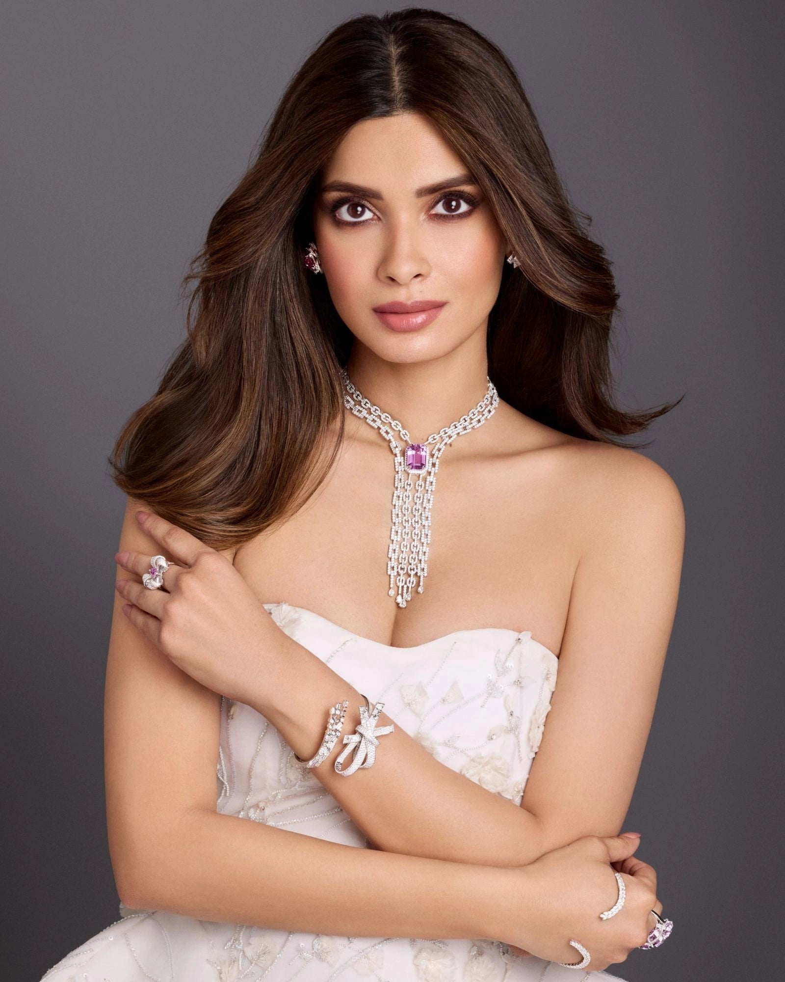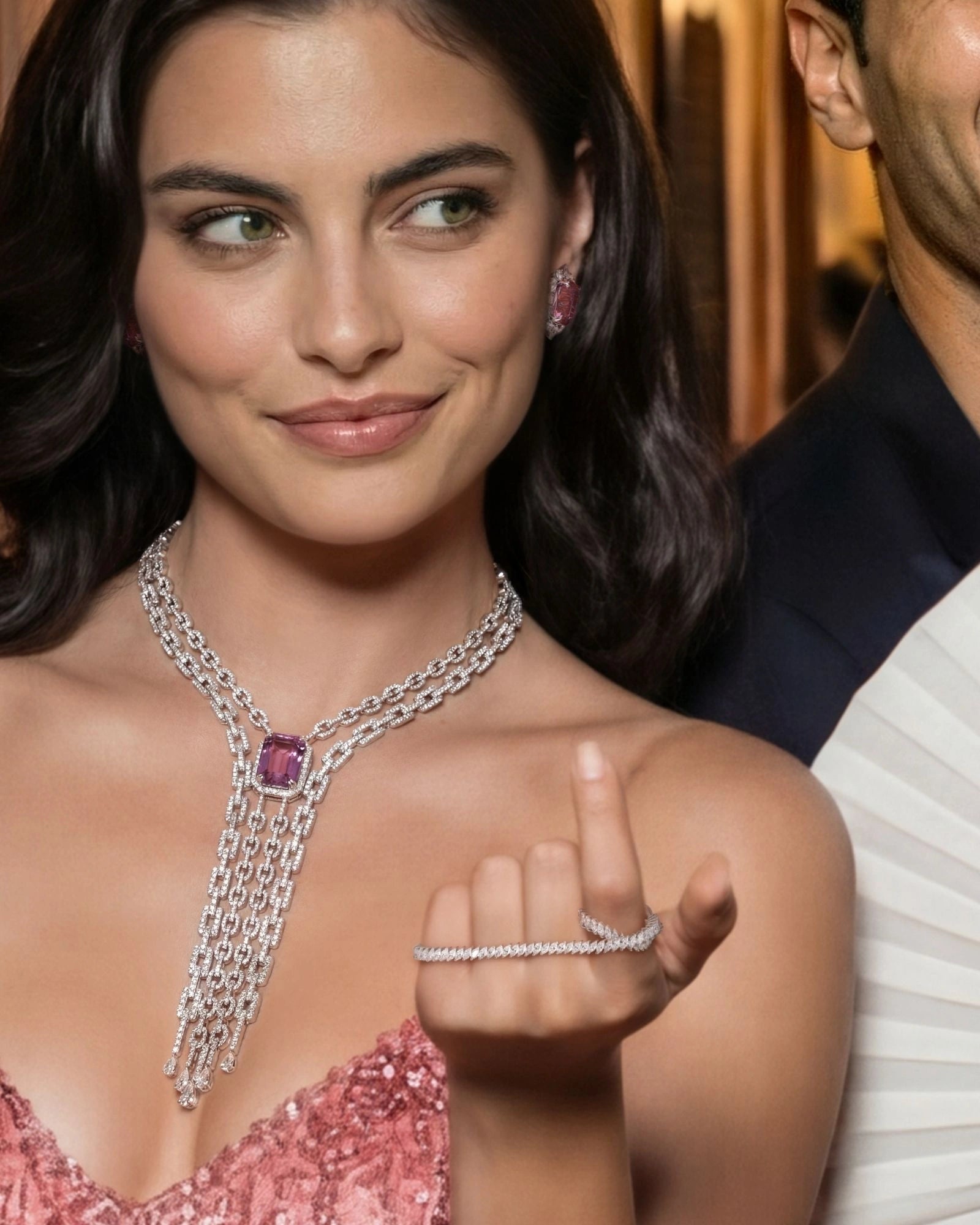 The Lariat Overload Necklace is designed for moments that celebrate YOU. Anchored by a striking kunzite of over 27 carats, and framed with over 18 carats of round and pear-cut diamonds, this piece feels unapologetically confident — a piece that doesn’t compete for attention, it owns it. Ideal for evening wear and statement styling, and pairs seamlessly with sharp both traditional and modern silhouettes.