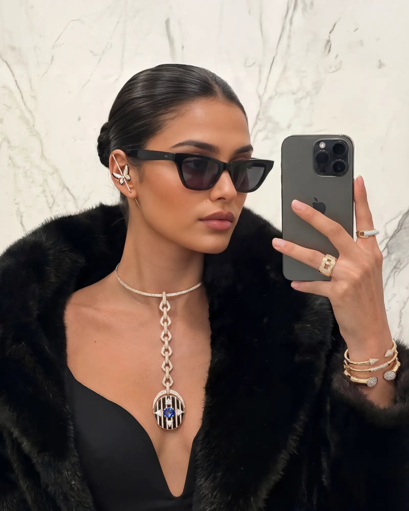 Fit for a queen, built for everyday slay. Crafted in 8 grams of 14k hallmarked gold and encrusted with round-cut diamonds, this ring brings just the right amount of drama. Stack it up or let it shine solo—either way, it rules.