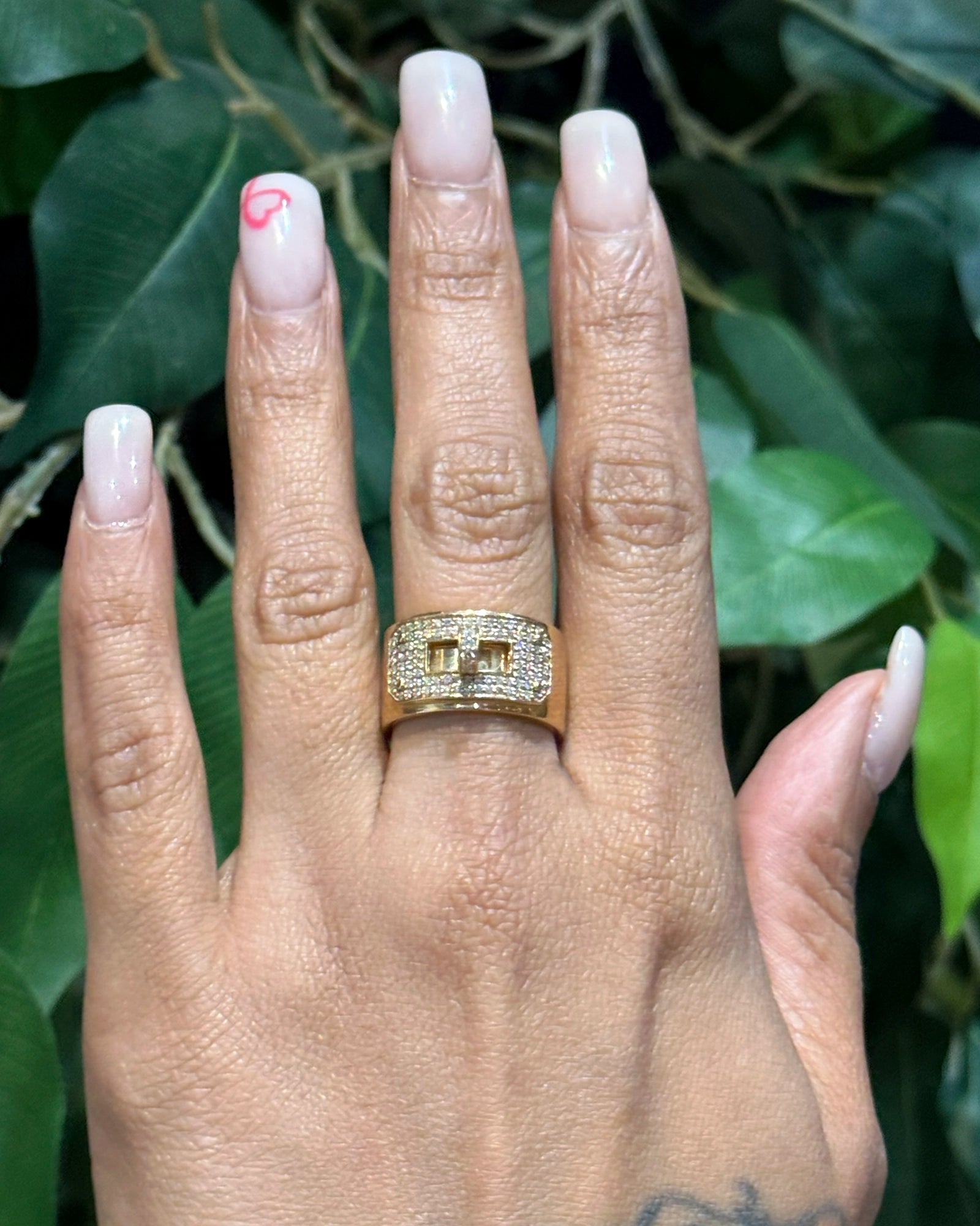 Fit for a queen, built for everyday slay. Crafted in 8 grams of 14k hallmarked gold and encrusted with round-cut diamonds, this ring brings just the right amount of drama. Stack it up or let it shine solo—either way, it rules.