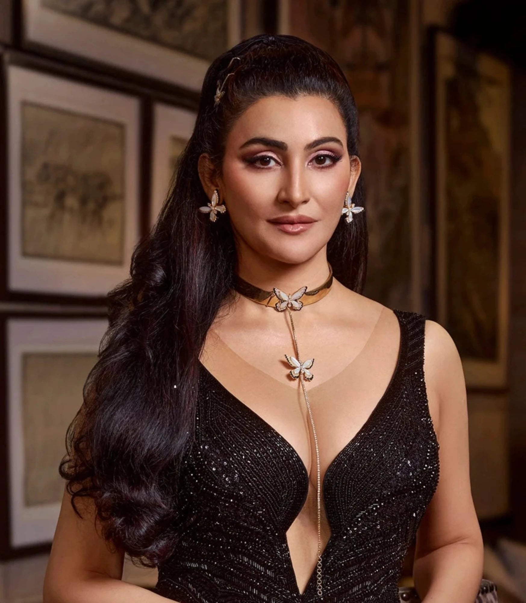 A piece close to AMARIS’ heart and spirit, the Born To Fly Choker is art translated into wearable reality, reimagined through Shalini Passi’s lens to reflect her distinctive artistic world. Crafted in a classic gold finish with round, pear, marquise, and oval diamonds, it features rare mother-of-pearl, treasured for its luminous beauty. Designed to shine at life’s most significant moments, this choker is both bold and graceful. Pair it with a brown lip, open hair, and the Born To Fly Earrings to channel Shalini’s vision of effortless statement dressing.
