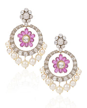 The Daisy’s World Earrings are a celebration of bold beauty—featuring vivid Mozambique rubies, luminous South Sea pearls, glittering round diamonds, and rich syndicate polki, all woven into a flowing design that radiates majestic charm. Every element is carefully chosen, every detail designed to command attention. Style them for the perfect bridesmaid look—bold, beautiful, and impossible to miss.