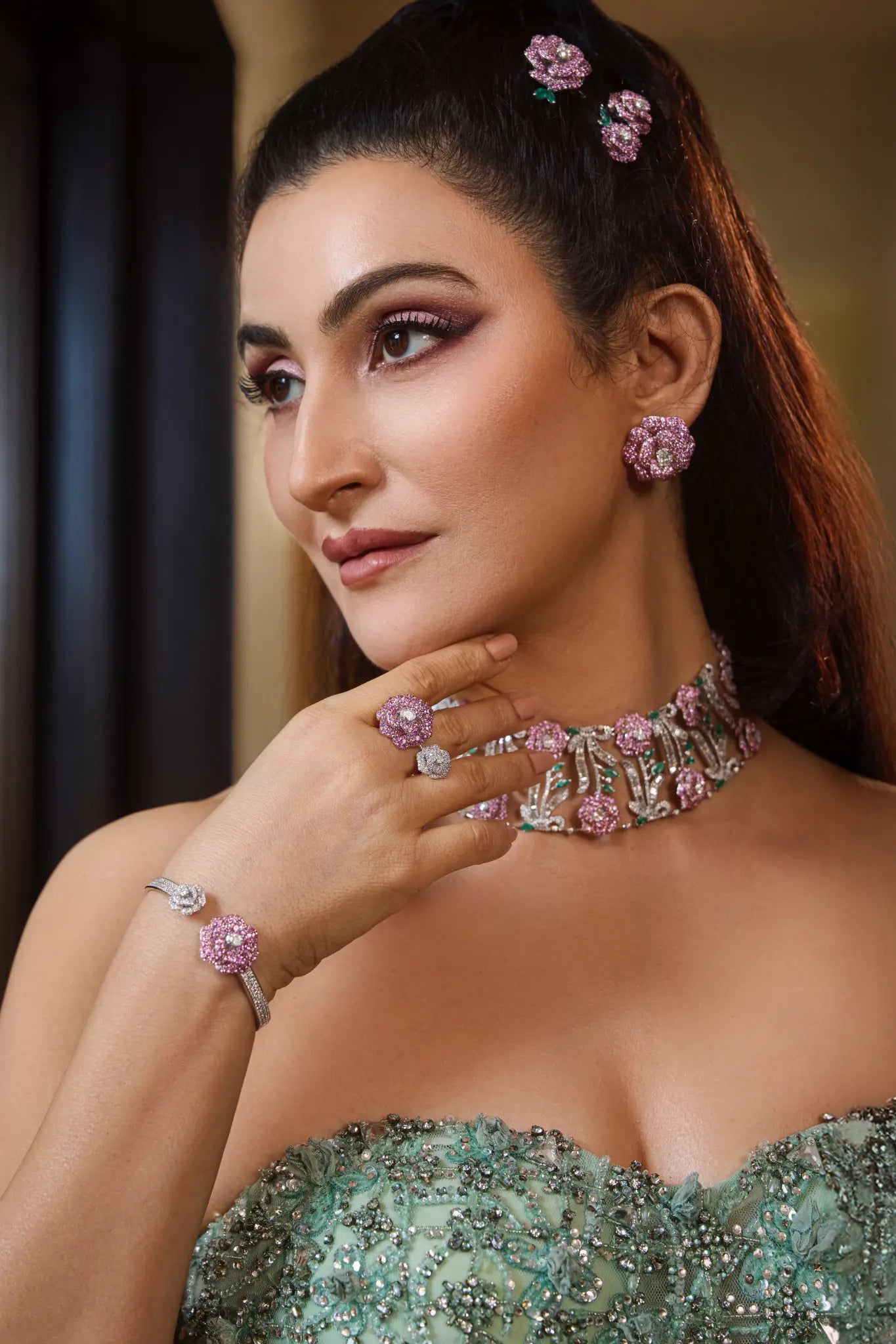 The Flower Power Bracelet from the Shalini Passi x AMARIS Capsule Collection brings Shalini’s love for flowers to life in a jewel that transforms fragile beauty into permanence. Designed with meticulously sourced pink sapphires and accented by sparkling diamonds, it wraps the wrist in elegance and symbolism. With its brilliant design and intricate detailing, this bracelet is both playful and powerful. Style it with your favorite dress and minimal makeup to let its vibrant charm take center stage.