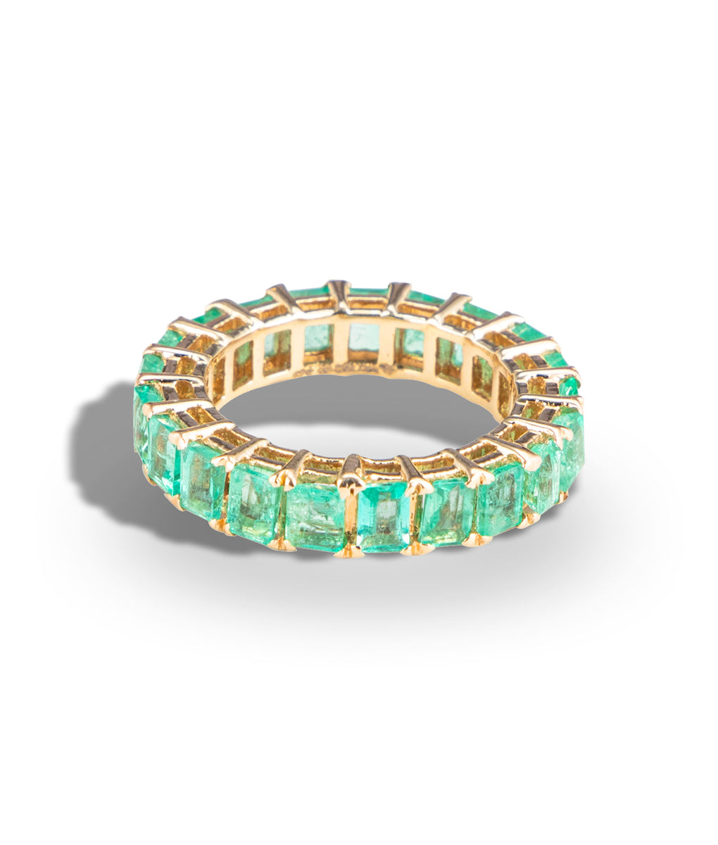 A new spin to the all-time classic eternity band is the new AMARIS Emerald Edit Ring. Add a little colour and little power of greens to your ring stack with this gorgeously green eternity band adorned in gleaming Zambian Emeralds in your favourite old-school yellow gold polish.